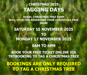 No booking is required to attend our Family Fun Weekend. If you would like to tag a Christmas tree you must book through the Trybooking website (details below). |