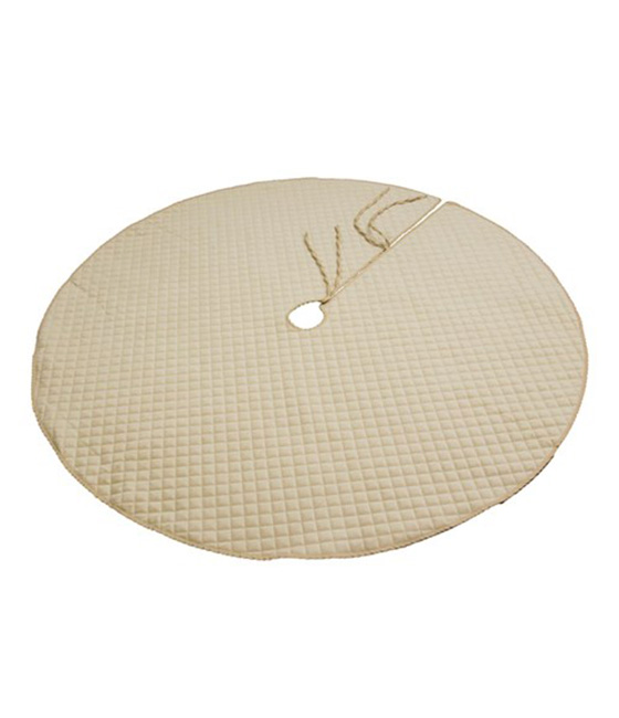 This design is a gold quilted skirt finish adding a subtle touch of sophistication and style to the bottom of any Christmas tree!