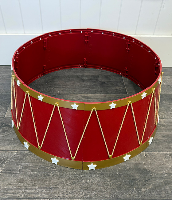 This festive inspired drum Christmas Tree collar is made from durable plastic and is easy to clean. It is suitable to cover the base of both fresh and artificial Christmas Trees. Simply “click” the sides together for quick assembly and disassembly for compact storage. This design is a new addition for this year for customers wanting to add colour to the bottom of their Christmas tree.
