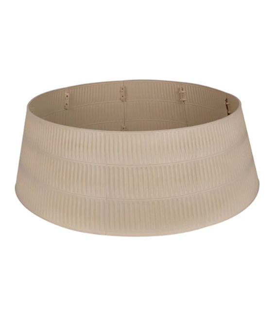 This ribbed look Christmas Tree collar is made from durable plastic and is easy to clean. It is suitable to cover the base of both fresh and artificial Christmas Trees. Simply “click” the sides together for quick assembly and disassembly for compact storage. This design is a new addition for this year for customers wanting to add a contemporary cover to the bottom of their Christmas tree.
